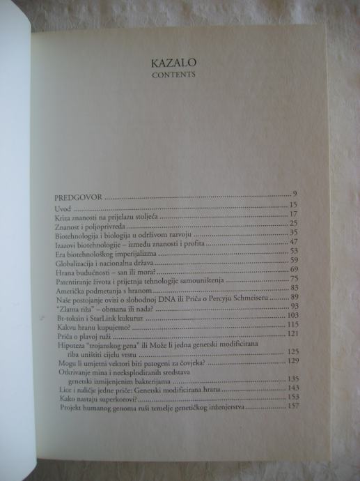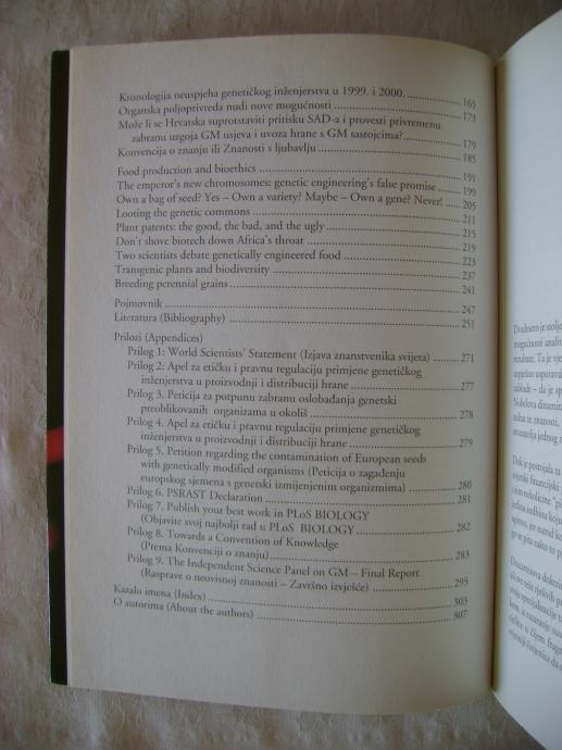 "Knjiga Marijana Jošta, našeg najpoznatijeg stručnjaka za genetski modificiranu hranu, uvjerljivo pisana, znanstveno utemeljena i potkrijepljena suvremenim literaturnim navodima, biti će korisna ne samo studentima agronomije, biologije, medicine, sociologije, prava i ekonomije, nego i svim ljudima kojima je očuvanje prirode nepisani zakon, te njihova vlastita savjest."