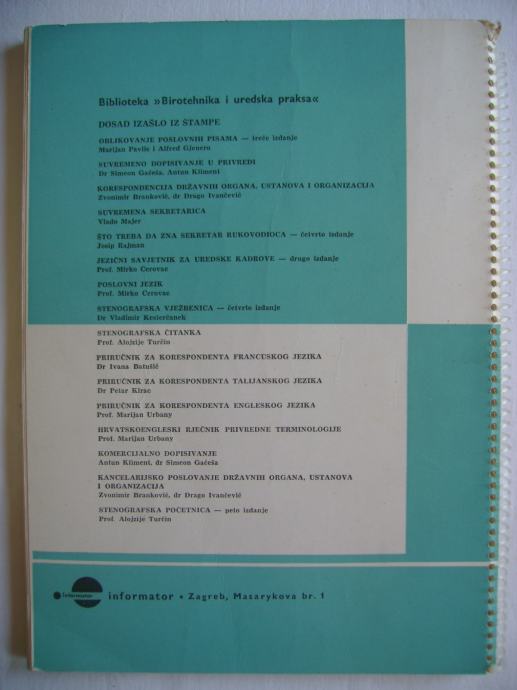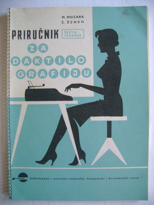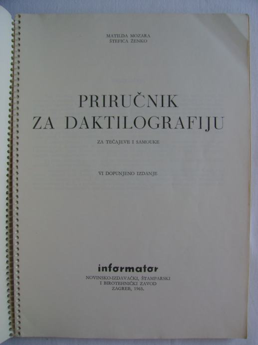 Matilda Mozara / Štefica Ženko - Priručnik za daktilografiju; Za tečajeve i samouke - izdavač Informator Zagreb, 1965. godine, 20 x 28 cm, spiralni uvez, meke korice, 158 stranica, ilustrirano.