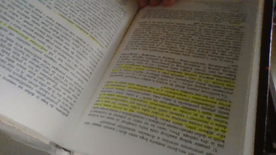 VANJSKI OMOT IMA JAKO PUNO OŠTEĆENJA, KORICE IMAJU DOSTA MRLJA I MANJIH OŠTEĆENJA, NEŠTO MRLJA UNUTAR KNJIGE, DOSTA POTCRTAVANJA I OZNAKA FLOMASTEROM I OBIČNOM OLOVKOM UNUTAR KNJIGE