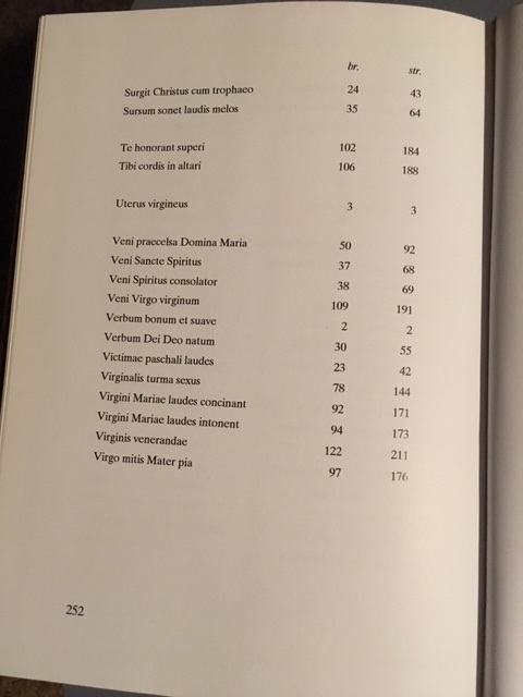 Napomena Uvod: str. IX, Opis rukopisa: str. XIII, Pisar, vrijeme i mjesto nastanka: str. XVIII, Liturgijsko ustrojstvo: str. XXII, Pjesničke značajke teksta: str. XXX, Glazbena obilježja napjeva: str. XXXVIII, Sekvence u zagrebačkim obrednim knjigama