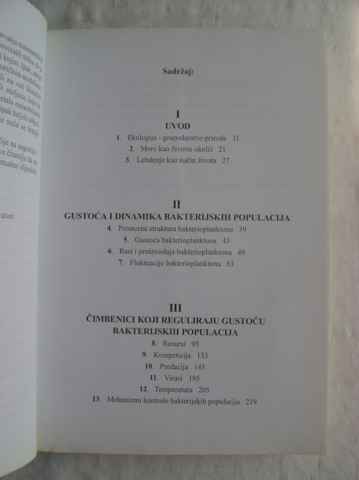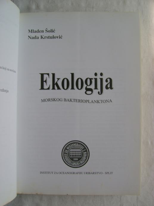 Mladen Šolić / Nada Krstulović - Ekologija morskog bakterioplanktona - izdavač Institut za oceanografiju i ribarstvo, Split 2000. godine, 17 x 2 cm, meki uvez sa preklopom, 452 stranice.