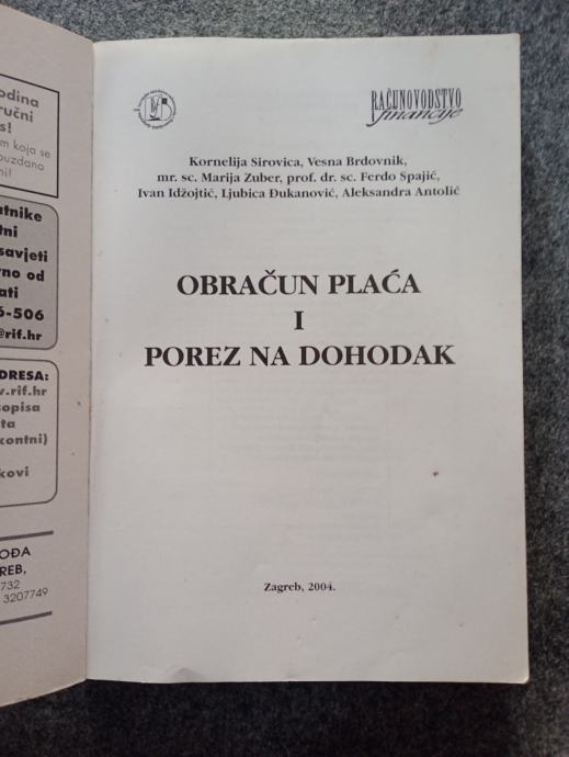 Prodajem stručnu knjigu "Obračun plaća i porez na dohodak", izdanu u Zagrebu 2004. godine u izdanju časopisa Računovodstvo i financije. Autori knjige su Kornelija Sirovica, Vesna Brdovnik, mr. sc. Marija Zuber, prof. dr. sc. Ferdo Spajić, Ivan Idžojtić, Ljubica Dukanović i Aleksandra Antolić. Knjiga obrađuje tematiku obračuna plaća te poreza na dohodak i korisna je svima koji se bave tim područjem računovodstva i financija.