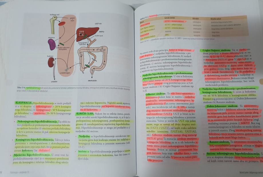 Knjiga je očuvana, no cijela unutrašnjost je podcrtavana markerima.