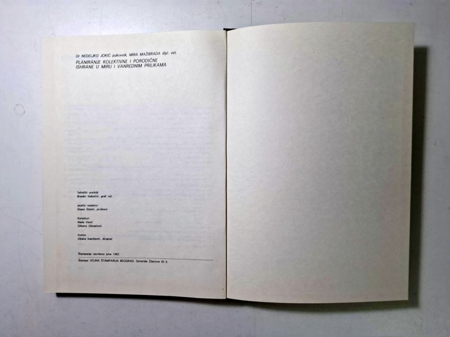Jokić, Nedeljko | Mažibrada, Mira - Planiranje kolektivne i porodične ishrane u miru i vanrednim prilikama