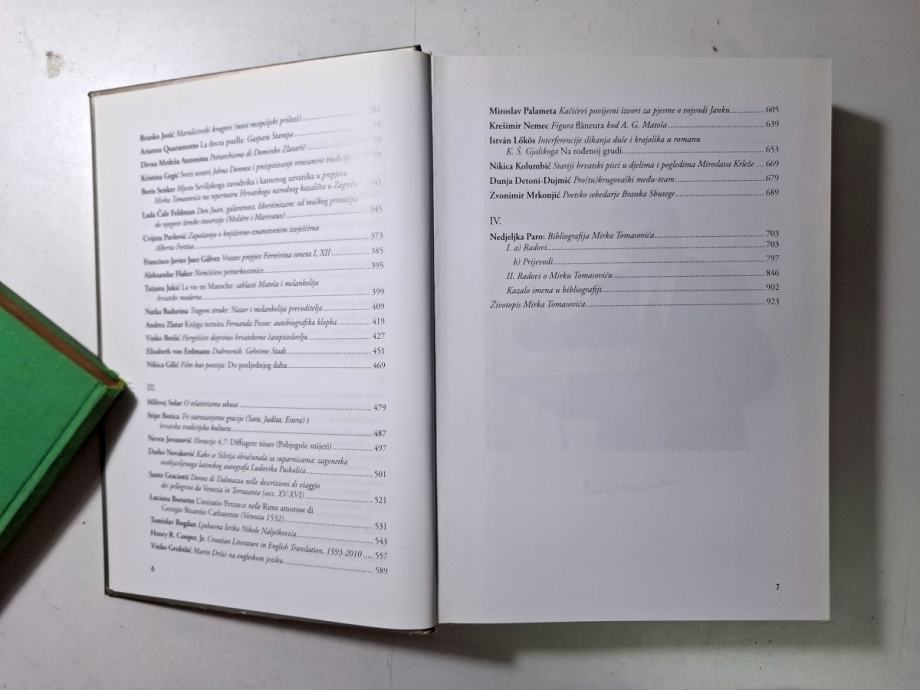 Bibliografija uz većinu radova. Str. 703-901: Bibliografija Mirka Tomasovića / Nedjeljka Paro. Kazalo. Tomasović, Mirko, 1938-2017 - bibliografije. Tomasović, Mirko, 1938-2017 - život i djelo. Don Juan - književne teme i motivi. Sbutega, Branko, 1952-2006 (poezija). Krleža, Miroslav, 1893-1981 (djela) - utjecaj starije hrvatske književnosti. Gjalski, Ksaver Šandor, 1854-1935 (Na rođenoj grudi). Matoš, Antun Gustav, 1873-1914 (poezija). Kačić Miošić, Andrija, 1704-1760 (Razgovor ugodni naroda slovinskoga) - povijesni izvori. Držić, Marin, ca 1508-1567 (djela) - prijevodi - engleski jezik. Nalješković, Nikola, ca 1510-1587 (ljubavna poezija). Bizanti, Juraj, ca 1490-ca 1560 (Rime amorose). Paskalić, Ludovik, ca 1500-1551 (prijepisi pjesama). Marai, Sandor, 1900-1989 (Die Fremde). Hergešić, Ivo, ml., 1904-1977 (Hrvatske novine i časopisi do 1848.). Pessoa, Fernando Antonio Noguiera, 1888-1935 (Knjiga nemira). Nazor, Vladimir, 1876-1949 (Lirici croati). Zlatarić, Dominko, 1558-1613 (ljubavna poezija). Donne, John, 1572-1631 (Sveti soneti). Petrarca, Francesco, 1304-1374 (Kanconijer) - prijevodi - hrvatski jezik. Petrarca, Francesco, 1304-1374 (Kanconijer) - recepcija - Hrvatska. Marulić, Marko, 1450-1524 (Judita) - naslov. Marulić, Marko, 1450-1524 (epigrami). Marulić, Marko, 1450-1524 (djela) - filozofsko gledište. Marulić, Marko, 1450-1524 (djela) - recepcija - Europa. Stampa, Gaspara, ca 1523-ca 1554 (kanconijer). Međutim (časopis). Do posljednjeg daha . Književni ukus - teorija književnosti. Dokolica - književne teme i motivi. Hrvatska književnost - prijevodi - engleski jezik - bibliografije. Biblia : hrvatska usmena književnost. Hrvatska književnost - periodizacija. Hrvatska poezija - versifikacija - srednji vijek. Talijanski književnici - Dalmacija - 15/20. st. TOMASOVIĆ Hrvatska književnost. Književna kritika. Prikazi o Tomasoviću.