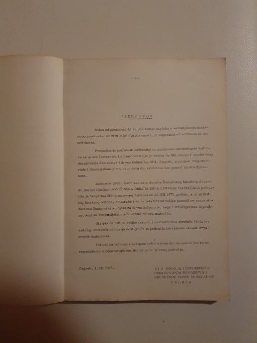Izdavač:SIZ odgoja i usmjerenog obrazovanja šumarstva i drvne industrije SR Hrvatske,Zagreb 1975.