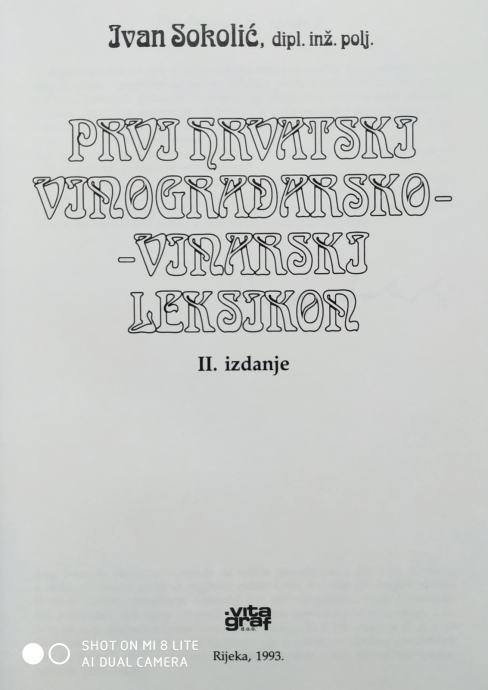 Prvi hrvatski vinogradarsko vinarski leksikon. 2.izd. 1993.god.