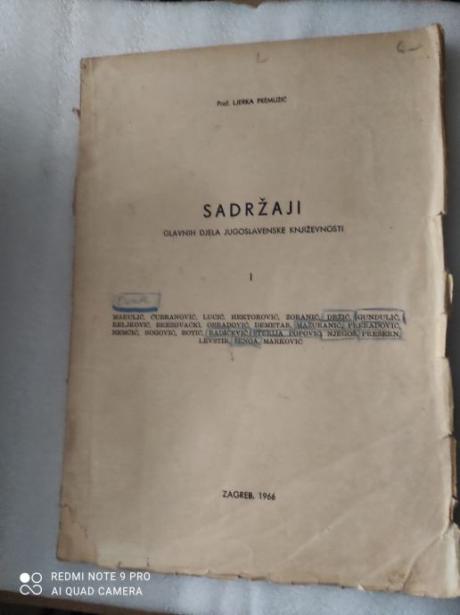 Sadržaj glavnih djela Jugoslavenske književnosti I