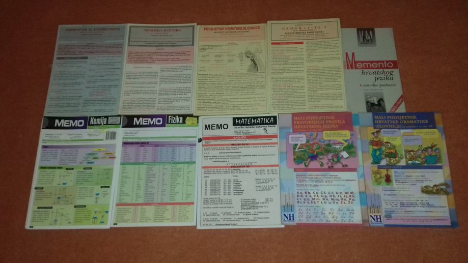Podsjetnici za matematiku, hrvatski jezik, engleski jezik, fiziku, kemiju, magnetostatiku i elektrostatiku.