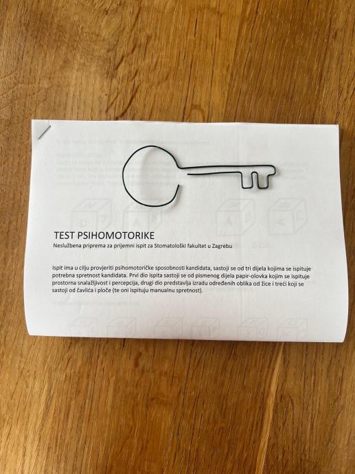Test psihomotorike + žice za ključ + skripta za prijemni