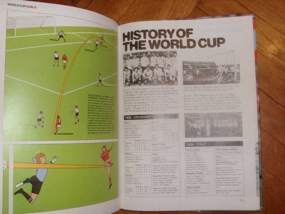 1981 Octopus books, London , 127 stranica tvrdoukoričeno. Luksuzno izdanje sa opisom i slikama temeljnih nogometnih pravila, te pregledom dotadašnjih svjetskih prvenstava, sa pogledom na predstojeće : 1982 - Španjolska (knjiga je klasično izdanje pred svjetsko prvenstvo) ; tvrdoukoričeno, niz slika u boji...