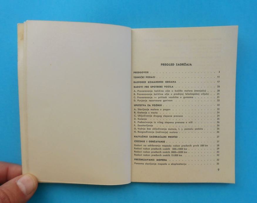 Staro originalno upustvo za TOMOS - KOLIBRI.