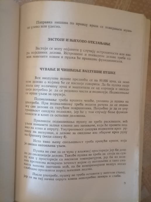Prirucnik za zracnu pusku u dobrom stanju sa slikom od svih djelova rastavljene puske
