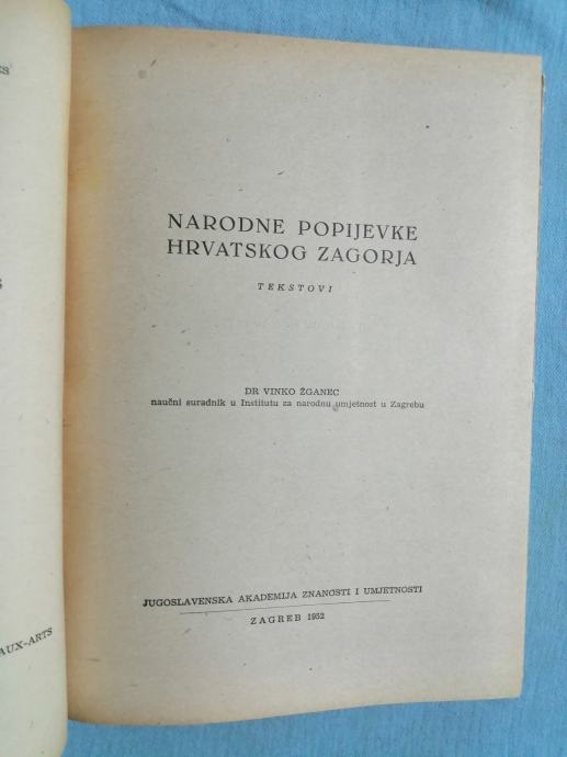 Vinko Žganec – Narodne popijevke Hrvatskoga Zagorja : tekstovi