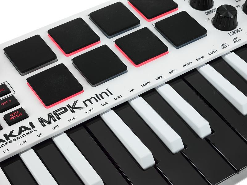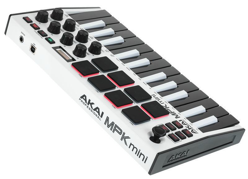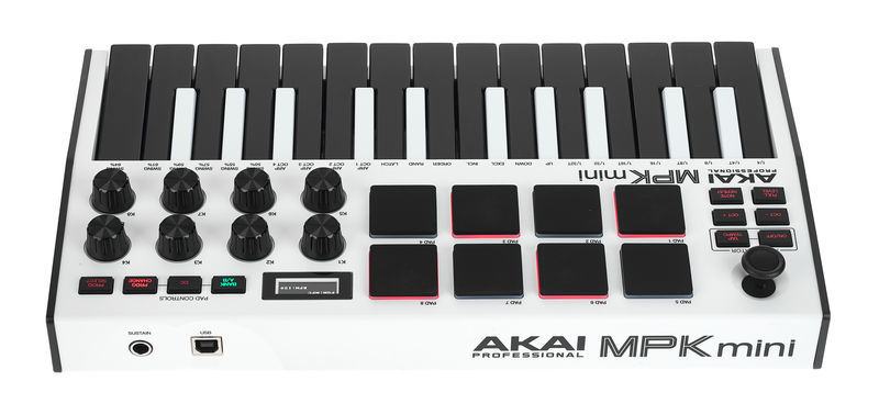 Akai MPK mini MK3 je dovoljno mali kontroler da stane u ruksak. ovaj MIDI kontroler se napaja preko USB-a. Sadrži 25 mini-tipki osjetljivih na dodir, spuštanje i podizanje oktave, 4-smjerni thumbstick za pitchbend i modulaciju. 8 MPC pads with Note Repeat and Full Level function; 8 assignable encorder; build-in Arpeggiator; Sustain pedal input (6.3mm jack); USB-B port (class compliant); software package included (Downloads): MPC Beats, 6 virtual instruments (Bassline, Tubesynth, Electric, Hybrid 3, Mini Grand, Velvet) and 2GB Sound-Content...