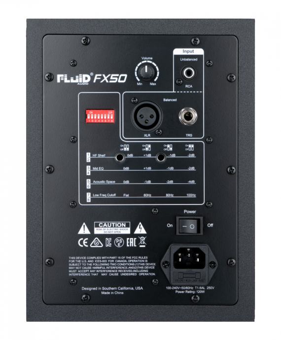 Monitori serije FX opremljeni su prekidačima za graničnu kontrolu EQ, koji vam omogućuju nadoknađivanje prostora koji možda nisu „podešeni“ ili ih je potrebno prilagoditi samo zbog blizine zida iza njih. Na stražnjoj se ploči nalazi i vodič koji je prikladno ispisan kako bi se pokazalo kako rade DIP prekidači i detaljnije objašnjenje u korisničkom priručniku.