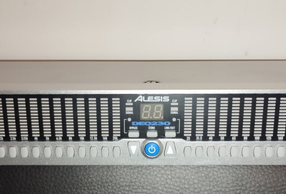 60 band-select buttons covering 25Hz to 20kHz, 13-segment LEDs for each band. Dedicated link, store, and bypass