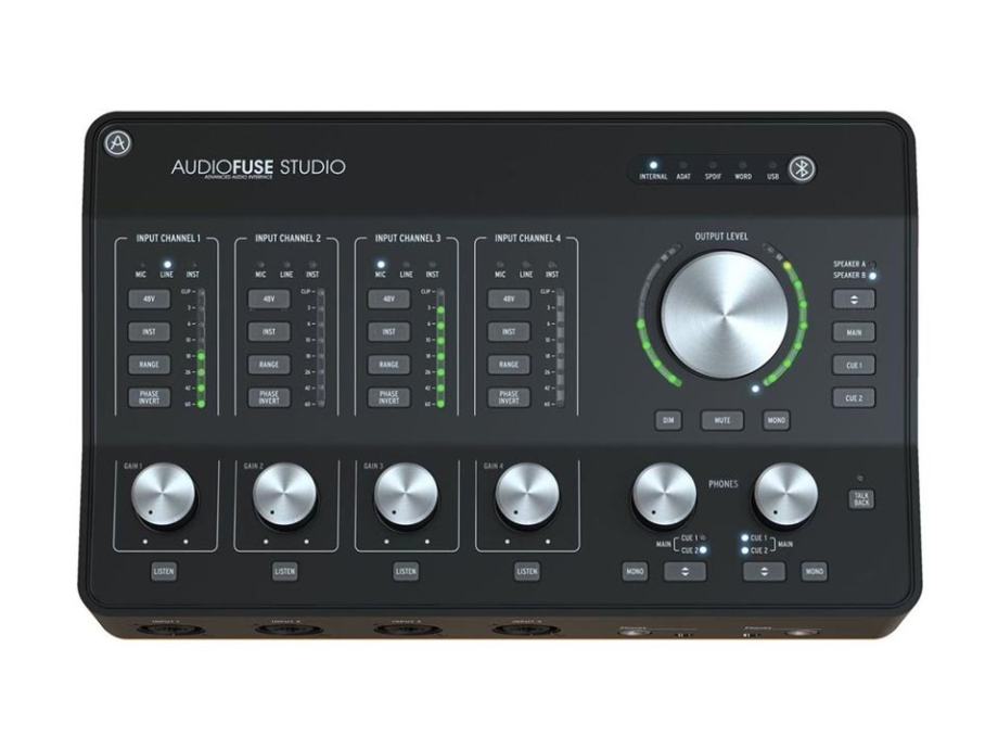 Arturia AudioFuse Studio je robusno audio sučelje u desktop formatu, a opremljeno je svim značajkama koje tvore baza manji tonski studio, ali i moćno mobilno sučelje za snimanje zvuka uživo na terenu. Sadrži četiri spektakularna diskretna mikrofonska pretpojačala sa + 72dB čistog pojačanja koje je dovoljno i za “najgladnije” ribbon i dinamičke mikrofone u vašem studiju. Ima ukupno osam TRS linijskih ulaza i osam dodatnih kanala (ulaza/izlaza) preko ADAT optičkog priključka. Tu su i dva zasebna izlaza za slušalice, dva izlaza za zvučnike, pa čak i ugrađeni Bluetooth prijemnik za direktnu reprodukciju. Ovo sjajno sučelje dolazi s Arturiovim paketom Creative Suite koji nudi niz mogućnosti za oblikovanje zvuka i stvaranje glazbe.