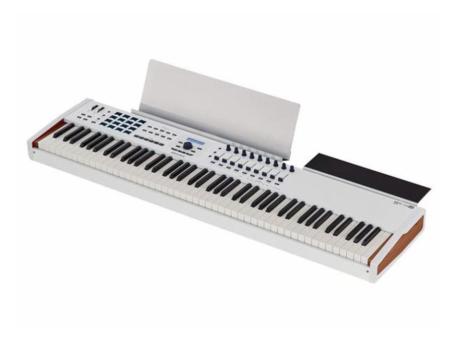 Ako tražite midi klavijaturu s kvalitetnim teškim tipkama i svim profesionalnim značajkama za studio i pozornicu, onda je Arturia Keylab 88 mkII pravo rješenje za vas. Najnovija Arturijina perjanica ima najvjerniji osjećaj sviranja pravog koncertnog klavira s klavijaturom Fatar TP100LR (88 tipki, hammer-action) s aftertouchom. U usporedbi s prethodnim modelom, KeyLab 88 MKII nudi velika poboljšanja u radu i integraciji softvera preko programa DAW Command Center. S ugrađenim priključcima CV / Gate, vaši dragocjeni analogni sintesajzeri lako će se integrirati u postojeći lanac. Robusna kvaliteta izrade i opsežne upravljačke značajke za maksimalnu izražajnost pri sviranju (16 RGB padova, 9 rotacijskih enkodera, 9 kliznih potenciometara, mod i jog kotačići) čine Arturiu KeyLab 88 MKII idealnim alatom za najzahtjevnije klavijaturiste.