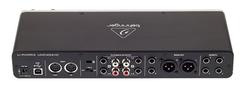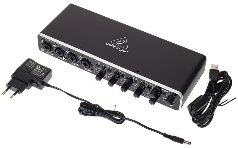 4×4 USB 2.0 Audio/MIDI interface with MIDAS Mic Preamps; 24 bits; 192 kHz; 4 Inputs and 4 outputs; x XLR/jack 6.3 mm Combo Mic/Line input with Pad switch and Clip/Signal LED; 4x Line output jack 6.3 mm/RCA (2x L/R); Main output XLR/jack; 4x Insert 6.3 mm jacks; MIDI in/out; Switchable phantom power 48 V (for channel 1-4); Stereo headphone-output 6.3 mm jack; USB port; Power supply connector; Zero-Latency Direct Monitoring; For WIN XP and Mac OSX or higher