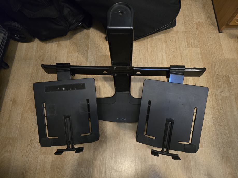 Prodajem Ergotron Neo-Flex Dual Laptop stalak, profesionalni podesivi stalak koji može nositi dva laptopa ili laptop + DJ controller, MIDI kontroler, drum machine, mikser, audio interface setup i slično.