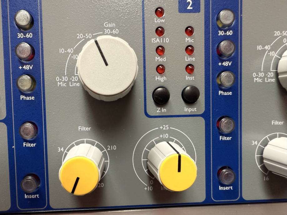 Za svaki kanal: phantom power, insert, phase reverse and variable high-pass filter (16 - 420 Hz)
