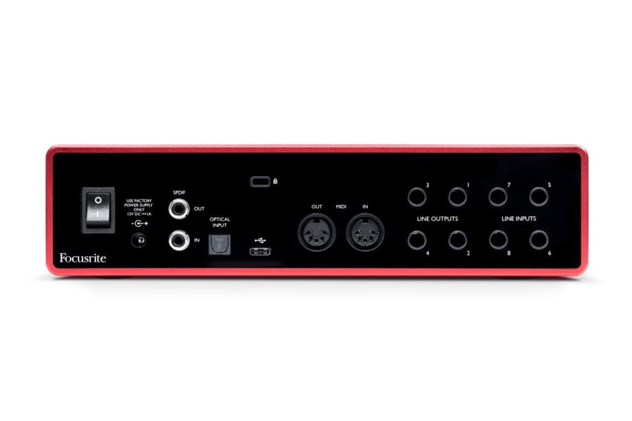 Treća generacija Scarlett 18i8 savršen je audio interfejs za audio inženjere i producente koji se moraju prilagoditi svom okruženju snimanja bez obzira gdje god se nalazili... Ovaj audio interfejs omogućava Vam osam analognih ulaza: četiri mikrofonska/linijska ulaza, dva ulaza s visokom razinom otpora, instrumente visokih prostorija + četiri dodatna ulaza fiksne linije na zadnjoj strani. Optički ulaz omogućava Vam proširenje do osam dodatnih kanala za potrebe složenijeg snimanja. S poboljšanom A/D i D/A konverzijom Vaši snimci i reprodukcija zvučati će jasno i izražajno do 24-bit/192kHz, što je od velikog značaja pri usavršavanju Vašeg miksa.