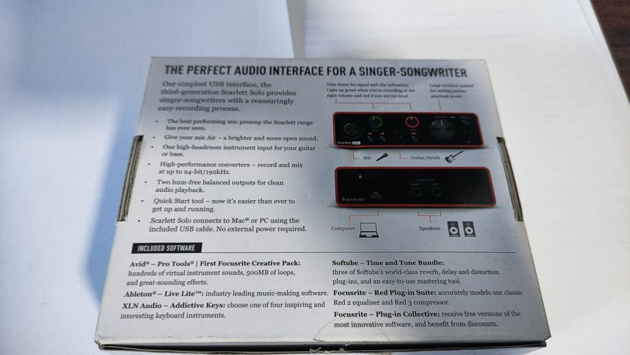 Riječi za pretraživanje: Focusrite, Scarlett Solo, Scarlett Solo 3rd Gen, Scarlett 3rd generation, USB audio interface, audio interfejs, zvučna kartica, sound card, recording interface, home studio, kućni studio, studio oprema, snimanje vokala, snimanje gitare, podcast oprema, streaming audio, music production, DAW interface, Pro Tools, Ableton Live, Logic Pro, Cubase, Reaper, FL Studio, Presonus, Steinberg, Behringer, Native Instruments, Audient, Universal Audio, MOTU, SSL, Arturia, M-Audio, Tascam, Zoom, RME, Focusrite Scarlett, rabljena studijska oprema, audio oprema prodaja