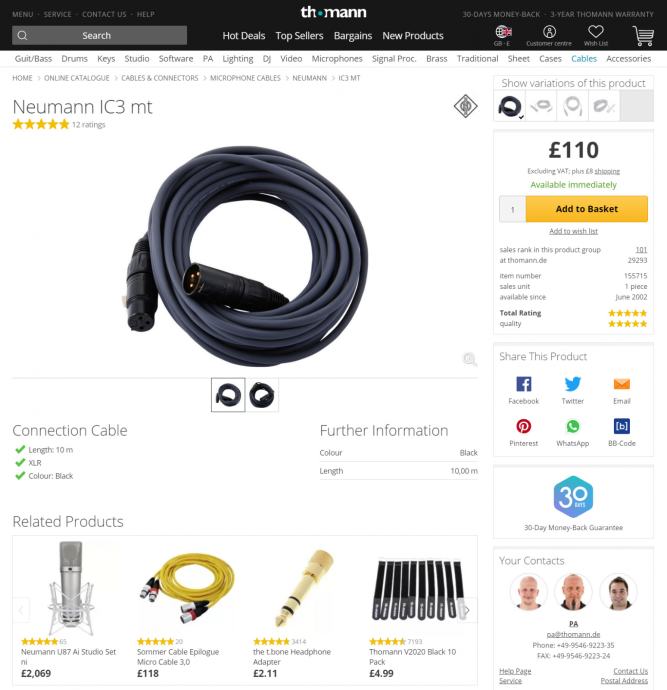 "Even if very long (Neumann) cables are used, the electroacoustic characteristics