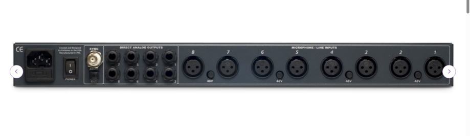 18 ulaza, 18 izlaza, 8 mikrofonskih predpojačala. SPDIF in/out, ADAT in/out. S njom i ADAT Presonus Digimax D8, kao dodatnih 8 mikrofonskih pretpojačala. Znači 16 odličnih inputa sveukupno (mikrofonski/line in). Mogu vam poslati primjere što smo snimali na tu kombinaciju.