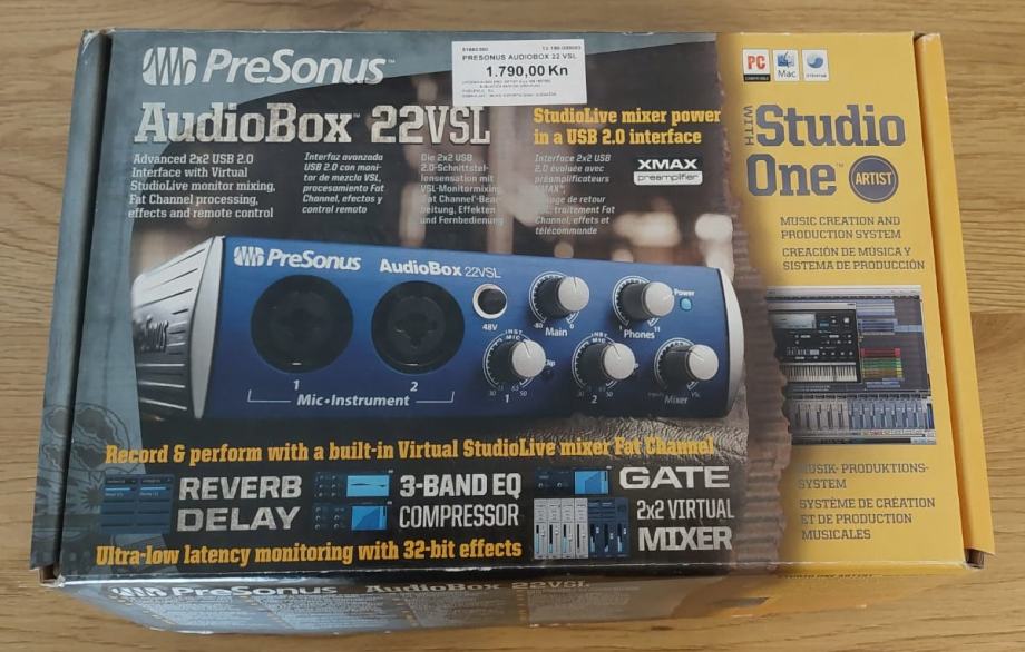 Prodajem Presonus Audiobox 22VSL, zvučnu karticu u dobrom stanju. Potpuno ispravna, vidljivi tragovi korištenja.