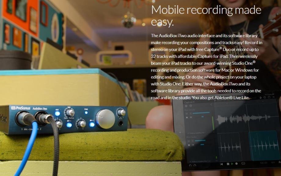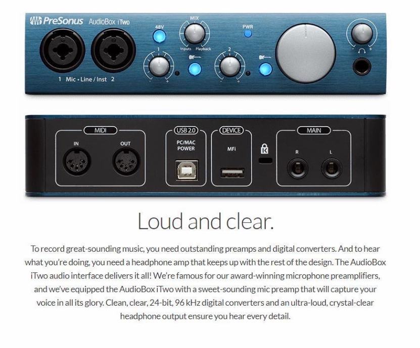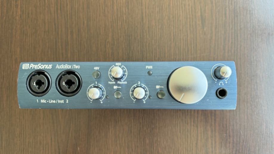 Prodajem Presonus AudioBox iTwo zvučnu karticu odnosno audio interface za snimanje i mali kućni studio. Kartica ima dva ulaza koji su xlr/jack dva u jedan i omogućuje istovremeno spajanje i snimanje npr gitare i mikrofona za pjevanje. Također može se spojiti na iPad i snimati direktno na njega bez spajanja dodatnog napajanja pa mozete snimati praktički svagdje bez potrebe za računalom i imate mali portabilni studijo gdje god da idete. Ima opciju spajanja midi kontrolera. Snima u studijskom standardu 24-bit, 96 kHz i kompatibilna je sa wimdows 10 i 11 i Mac.