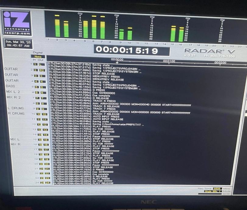 U ponudi je izvrstan terenski višekanalni HD snimač , IZ-Radar V Recorder s instaliranim 3x8 I/O Nyquist Mastering grade 24 tracks-192k konverterima + Protools11 HD + Harrison MixBus Plugins i s kompletnim pripadajućim priborom
