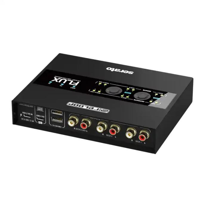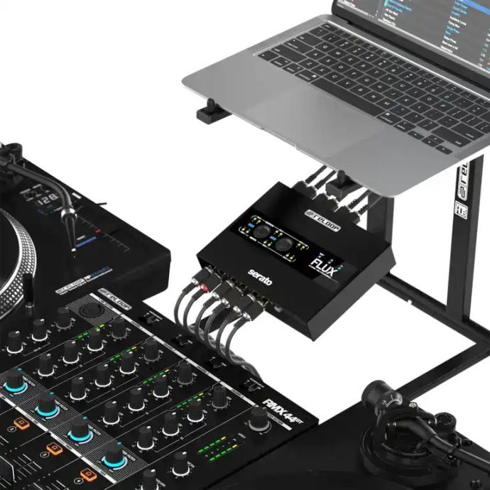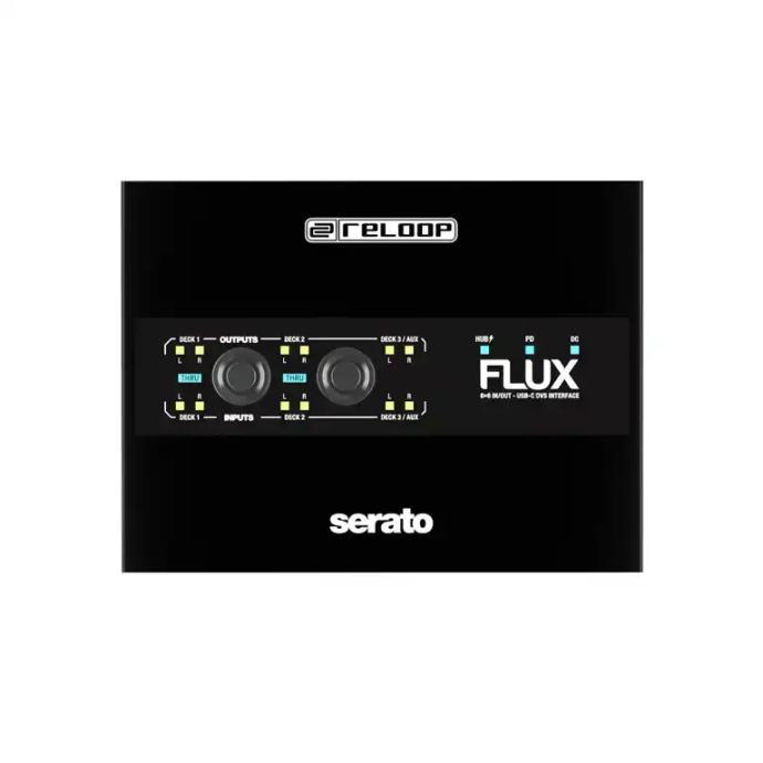 The Reloop Flux is a next-generation USB-C interface for using Serato DJ Pro with turntables, CDJs or other media players. The interface boasts superior audio qualities, a well-designed operating concept and a club-ready design. It can transform any conventional mixer into a professional digital vinyl system.