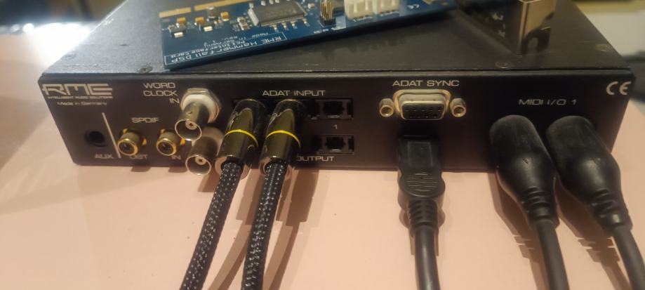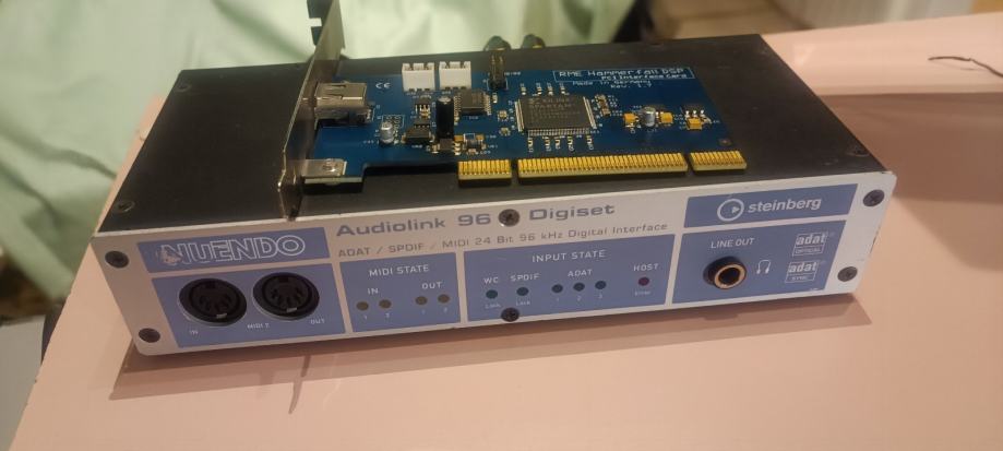 Prodajem karticu iz naslova, vidljivu na priloženim slikama. Veoma malo korištena ali funkcionalna. Interface je napravljen od strane RME kao paket za Steinberg Nuendo, provjereno radi sa Cubase, Nuendo, Reaper. U kompletu prodajem sa SM PRO ADAT om te optičkim kablovima i adapterom, PCI RME interfaceom, FW kablom. Kartica se može proširiti na 24 analogna ulaza,... 2x MIDI in out, digital in/out te slušalice. Prodajem jer sam promjenio računalo i nije mi više potrebna. Moguća je zamjena za studijsku i glazbenu opremu, analogni synthesizer, u zamjeni cijena prema dogovoru. Informacije na mail, putem njuškala ili na GSM 095 381 3040 NO SMS