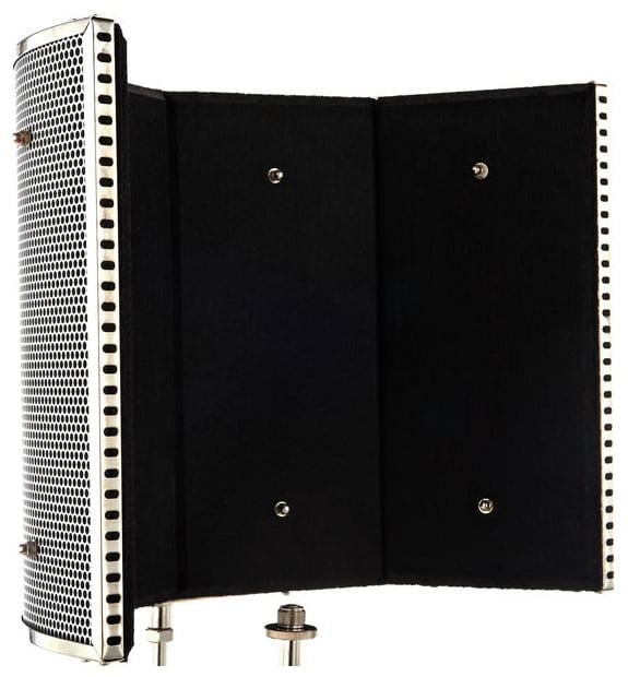 The essential task of the reflection filter is to minimise negative effects coming through the recording space (reflections, echoes, background noises, etc.), thus enabling a "dry" recording of voices and acoustic instruments. The reflective filter offers an improved recording environment without complicated studio development or expensive vocal booths.