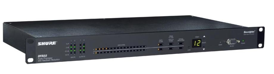 Two Channels. A Powerful Processor. The Shure DFR has quickly become the industry standard for effective feedback reduction. The DFR22 builds on that reputation to provide an affordable full-featured 2×2 audio processor with drag-and-drop software.