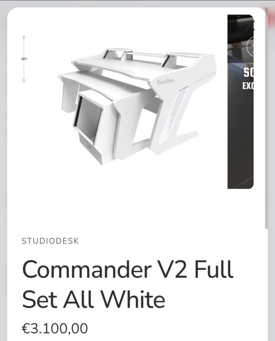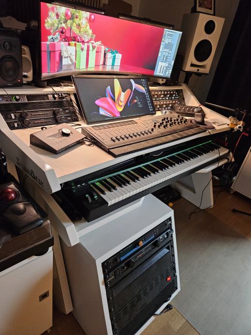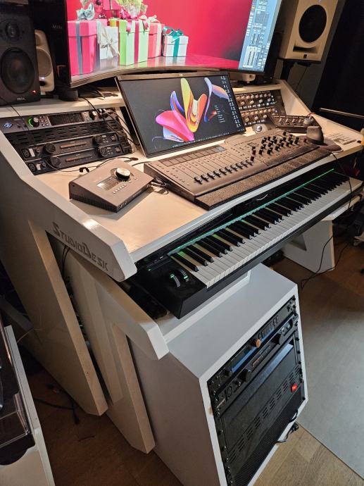 Studijski pult Studiodesk Commander (bez uređaja sa slike). Korišten 5 godina. Ima vidljivih tragova korištenja, u potpuno ispravnom stanju. Cijena 1200 €. Cijena novog (vidljivo na slici s originalne stranice) 3100 €. Pult će biti uskoro rastavljen za transport.