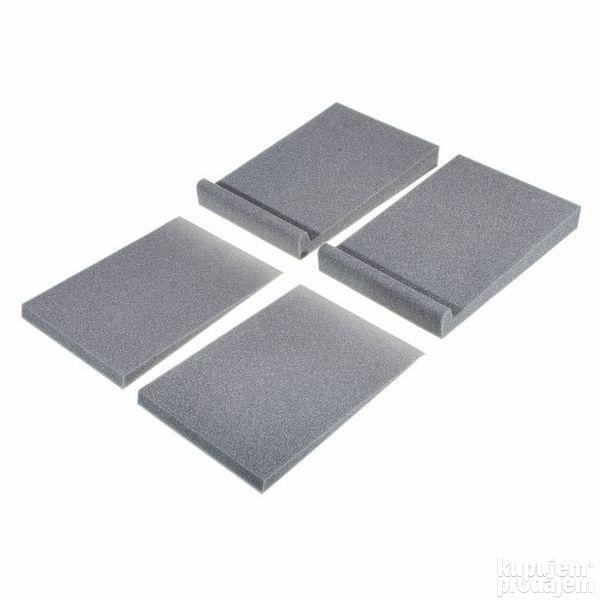 t.akustik ISO-Pad 8 izolator za studio monitor posebno dizajniran za profesionalnu i kućnu uporabu. Elimira rezonancu i reducira vibracije stalka ili police na kojima se nalazi monitor. Svaki komad sastoji se od dvije komponente, što omogućuje različite kombinacije: horizontalno pozicioniranje i dva različita kuta nagiba (4° i 8°). Nosivost po jastučiću je 18 kg, a dimenzije su: 260 x 40 x 370 mm mm (Š x V x D). Materijal: pjena (boja: Antracit). Prodaja isključivo u paru.
