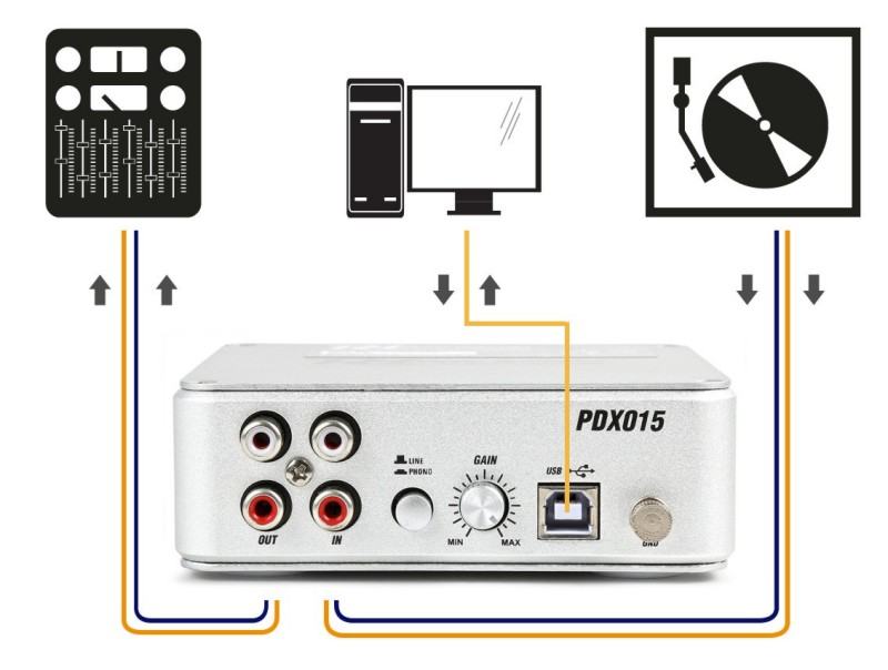 PDX015 USB phono pre-amplifier is a high quality USB phone-/line pre-amplifier. It's the ideal equalizer for MM-systems with many special features such as the possibility of a record player to be able to operate via USB to a PC as well as via line out to an amplifier without phono input with the supplied software. The PDX015 USB phono pre-amplifier can be powered by USB. The PDX015 USB phono pre-amplifier comes with the recording software Audacity.