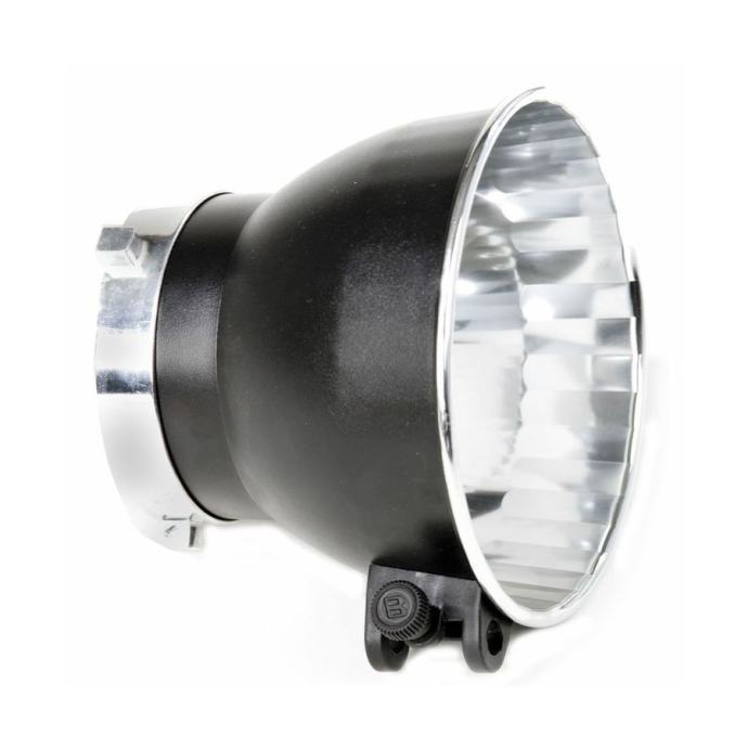 This Bowens 6.0" Wide-Angle Umbrella Reflector, 120 Degrees provides a very wide light spread from the light source. This reflector is ideal for use with an umbrella mounted to the flash head. When the reflector is used by itself, the light output has hard shadows and high contrast.