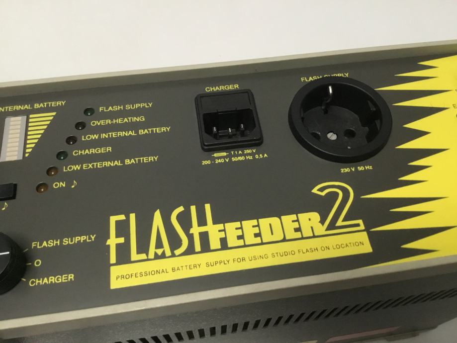 Flash Feeder 2 turbo, Elektrona, baterijsko napajanje za snimanja na lokacijama izvan studija, malo korišteno, odlično stanje, promijenjeni akumulatori (2 kom) prije 4 mjeseca, od tada nije korišteno. Može se spojiti na auto akumulator - auto ili kamionski, ili bilo koji 12/24v izvor napajanja. Isto tako mogu se napajati i ostali uređaji sa 220v koliki je izlazni napon uređaja. Uređaj je posebno napravljen za korištenje sa fleš rasvjetom i može izdržati opterećenje koje ona iziskuje. Izdrži do 1200Ws opterećenja.