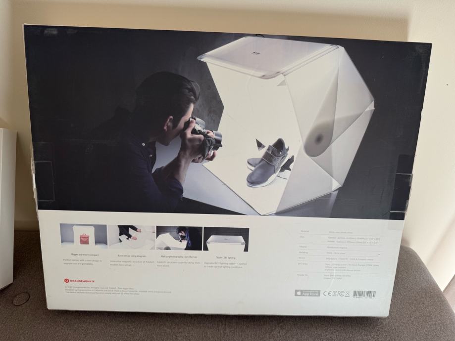 Prodajem Foldio 3 fotobox + Halo bar, dimenzija 62x64x55cm. U pakiranju sa crnom i bijelom pozadinom i Halo Barom led dodatnom rasvjetom. U odličnom stanju, malo korišten. Kupljen u Prizmi.
