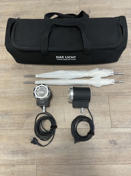 Prodajem komplet (2) halogenih reflektora Hedler C10 sa kišobranima i futrolom za nošenje. Jako malo korišteno.