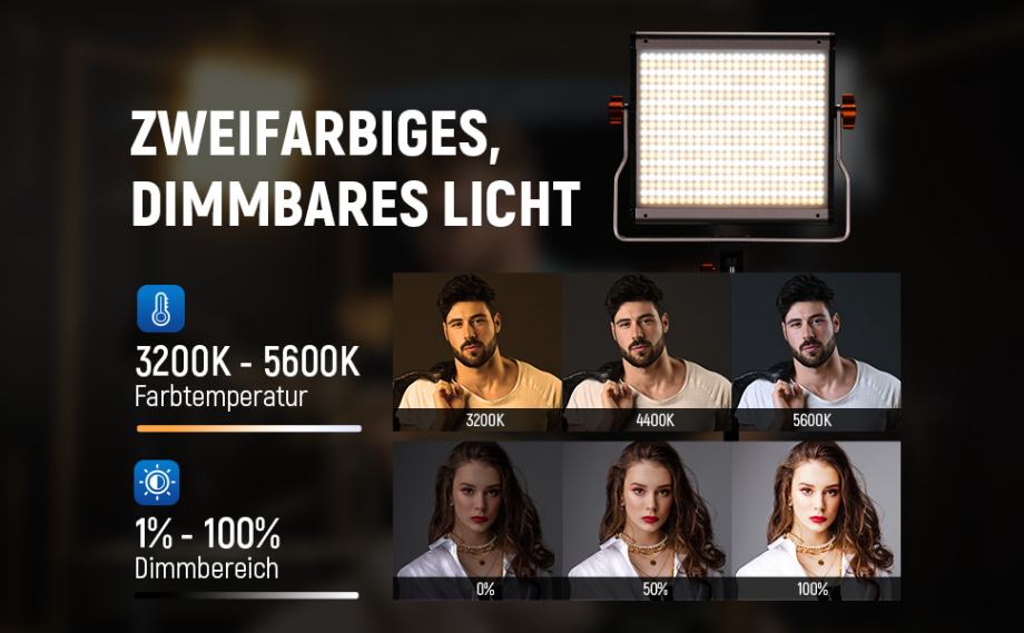 Sa 240 bijelih i 240 žutih LED dioda, svako fotografsko svjetlo iz ovog seta pruža jako, neprekidno i dvo-bojno osvjetljenje idealno za YouTube vlogove, portrete, fotografiranje proizvoda, filmove, igranje videoigara, streaming, podcaste, studijsko snimanje i online sastanke.