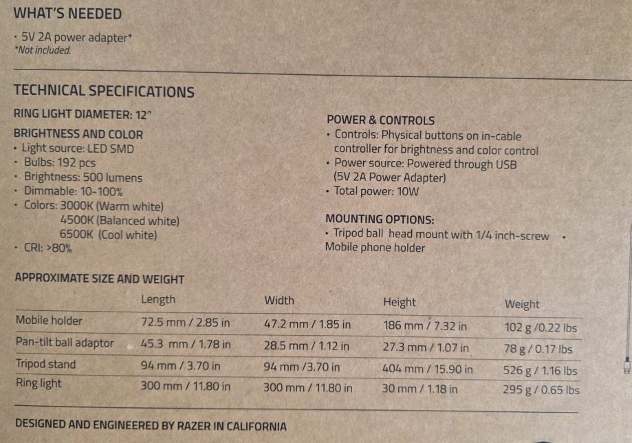 Specifikacije na slikama