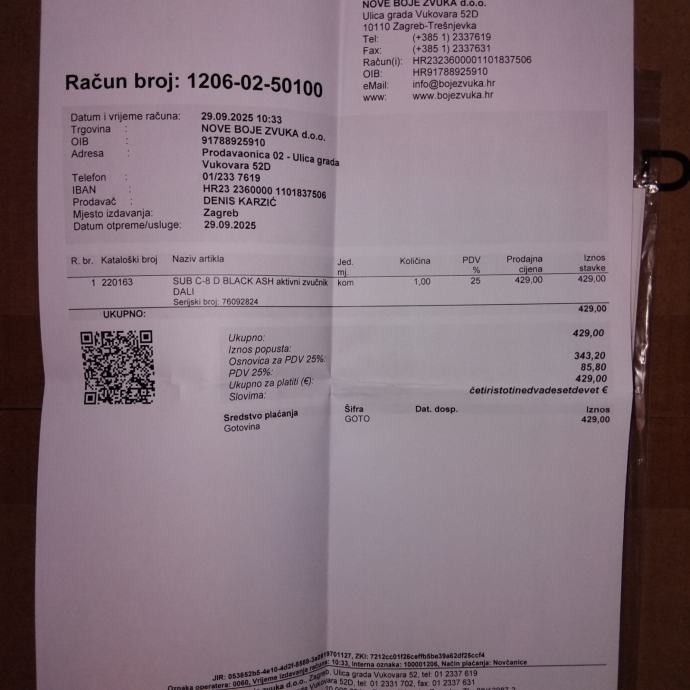 Sub je praktički nov, kupljen 29.9.2025, račun i garancija 2g,