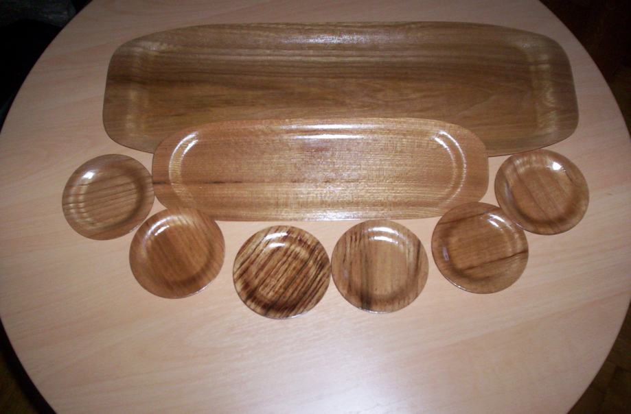 Servis 2 pladnja od bambusa i 6 podmetača za čaše također od bambusa.