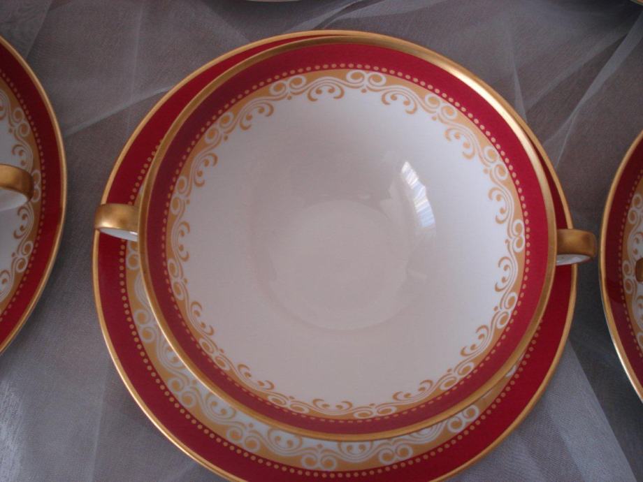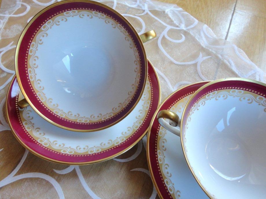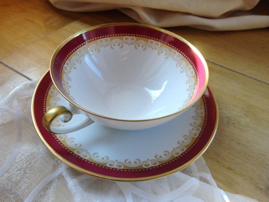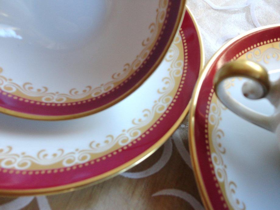 Profinjena kombinacija zlatne i tamno crvene boje na vrhunskom tankom porculanu