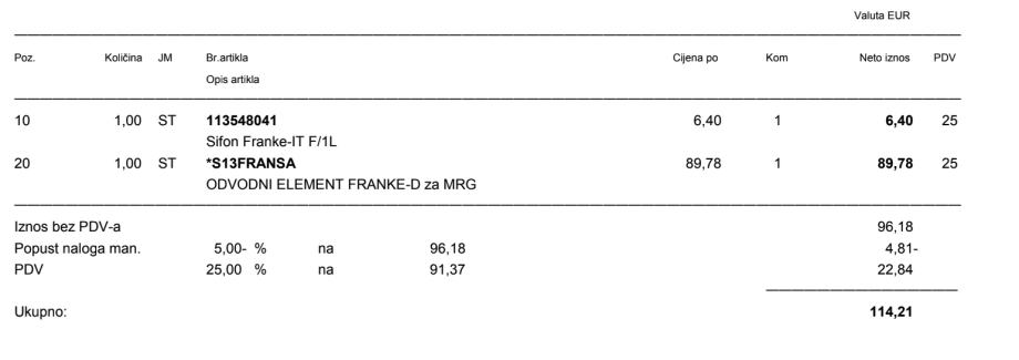 Dobiven uz FRANKE MARIS MRG 611-100 XL ali odgovara i drugim sudoperima FRANKE serije.